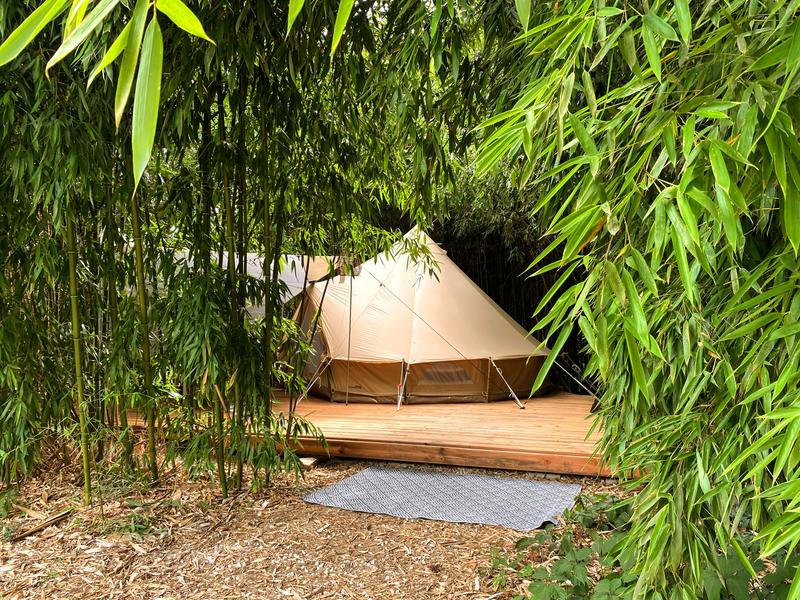 Petit camping ombragé, propice à un séjour tranquille et reposant. Ambiance familiale parmi les bambous et les écureuils, en tente, mobil home, caravane, ou camping-car.