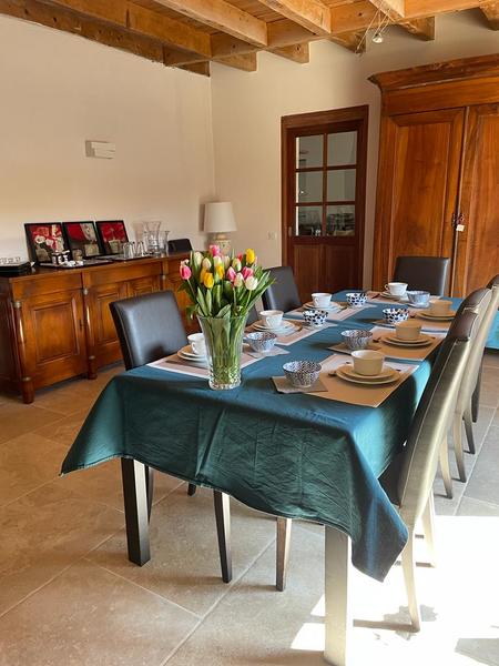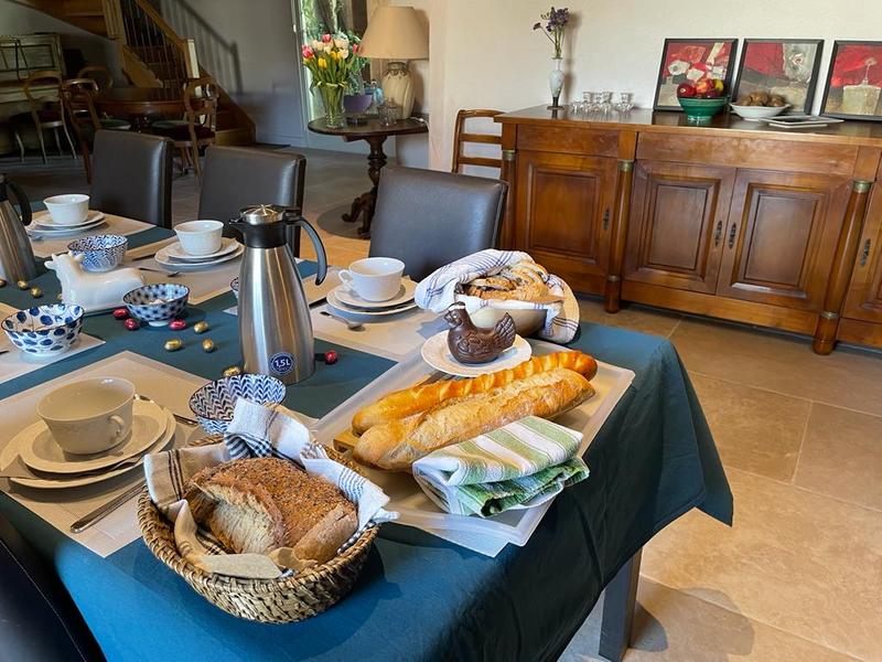Dans la grande cuisine avec cheminée, vous vous régalerez de copieux petits déjeuners. Table d'hôtes sur réservation. Les jardins ombragés seront propices à la détente. 6 km de la sortie A7 Valence Sud.