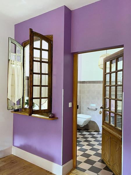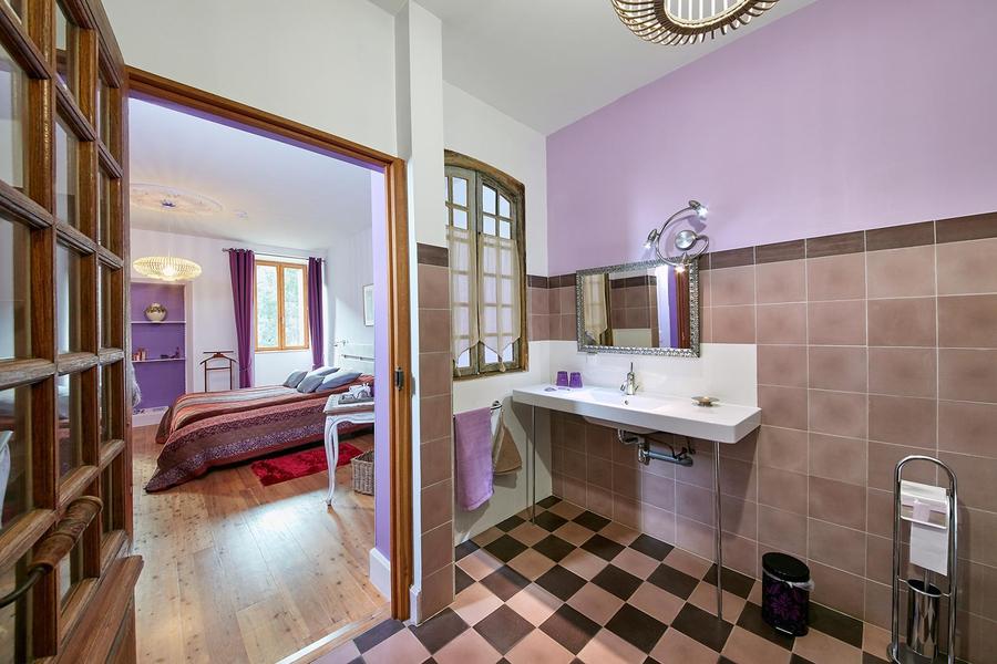 Améthyste c'est la grande chambre parme avec un lit 2 places séparable dans un style authentique, chic et moderne à la fois. Il est possible d’y ajouter un lit supplémentaire sur demande. Elle dispose d’une salle de bains individuelle avec douce, WC et lavabo