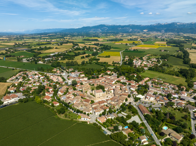 Alixan est un village médiéval circulaire dont subsistent quelques vestiges des anciens remparts. Autour d'un piton central en molasse, s'enroule un village à triple anneau. Au centre et au sommet de la butte était érigé un château.