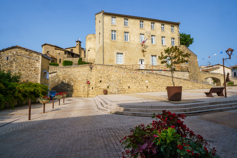 Dans ce château seuls subsistent les vestiges d'une tour, dans le bâtiment de l'actuelle mairie. Ces deux édifices flanquent une esplanade à laquelle on accède par une rampe ou un escalier monumental construit sur une arche.