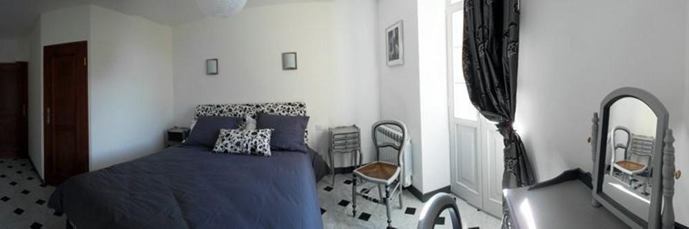 * Chambre double Geija avec balcon ouvrant sur la vallée : 1 lit (160 * 200 cm). Salle d'eau (douche, lavabo, wc) privative Salon commun ou vous sera servi les petits déjeuners ainsi que la table d'hôtes. Parking à l'orée du village piétonnier.