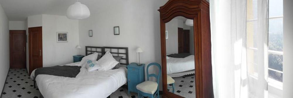 * Chambre double Soutaï dominant la vallée : 2 lits (90 * 200 cm rapprochables), Salle d'eau (douche, lavabo, wc) privative. * Chambre double Caquée avec balcon ouvrant sur la vallée : 1 lit (160 * 200 cm). Salle d'eau (douche, lavabo, wc) privative.