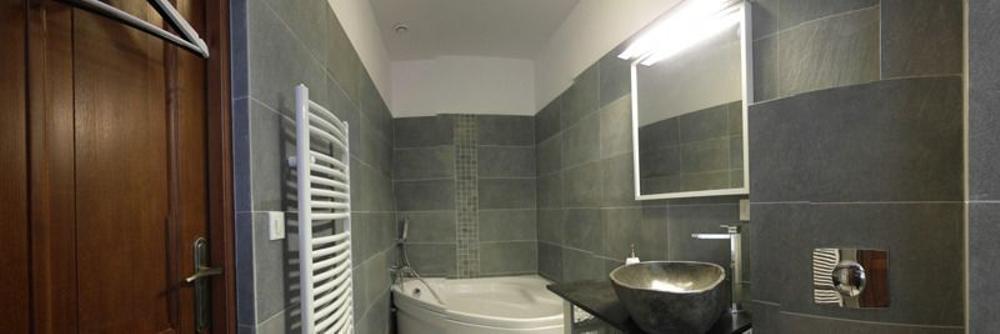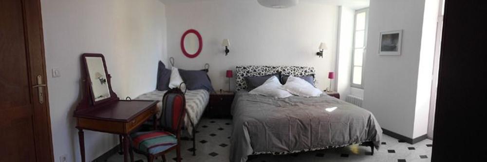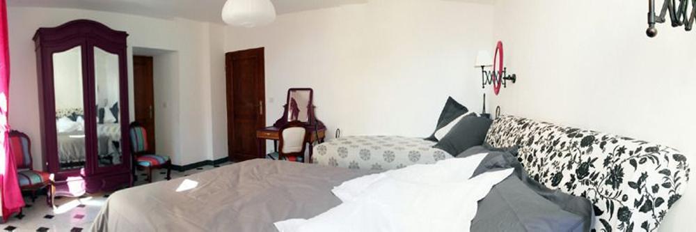 * Chambre triple Medge trois personnes : 2 lits (90 * 200 cm) rapprochables. 1 lit (80 * 190 cm). Salle de bains (baignoire, lavabo, wc) privative.