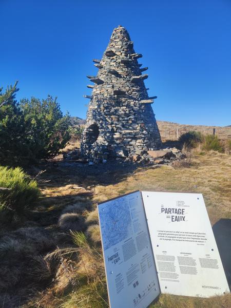 Et si la Loire, en plus de son chemin jusqu'à l'Atlantique, se jetait aussi dans la Méditerranée ? C'est l'hypothèse de G. Clément : le Mont Gerbier de Jonc fonctionnerait comme une "tour à eau". Œuvre de Gilles Clément dans le cadre du Partage des Eaux.