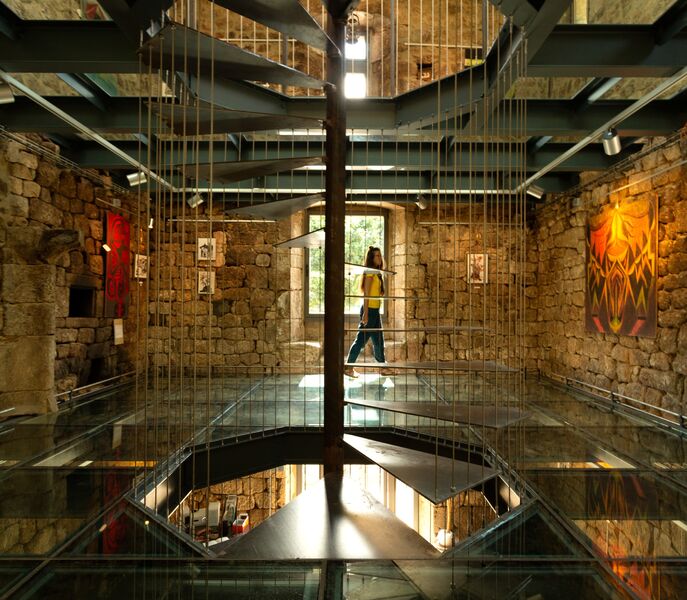 A l'intérieur, un escalier en métal et en verre vous étonnera par sa beauté translucide et vous emmènera au cœur des expositions à l'étage.