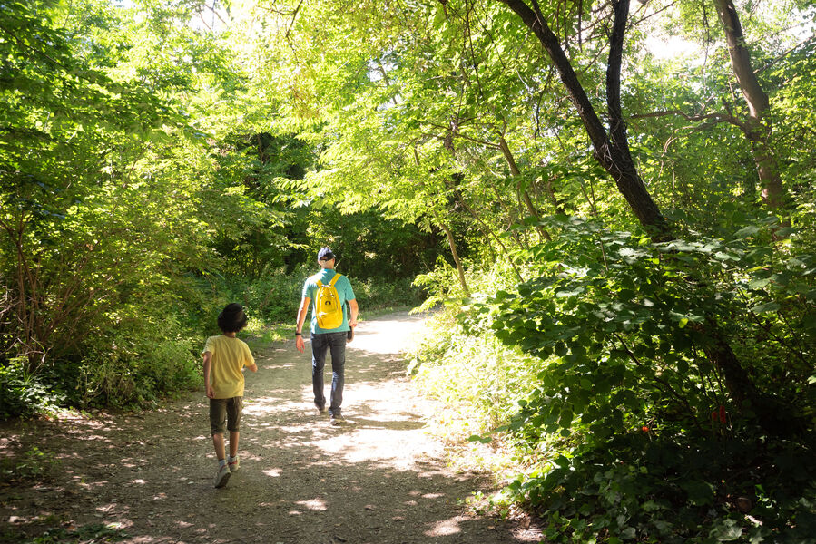 Remonter cette dernière jusqu'à trouver sur votre gauche un sentier (juste avant un parking). Suivre ce sentier le long du canal de l'epervière et traverser ainsi le Parc des Trinitaires.