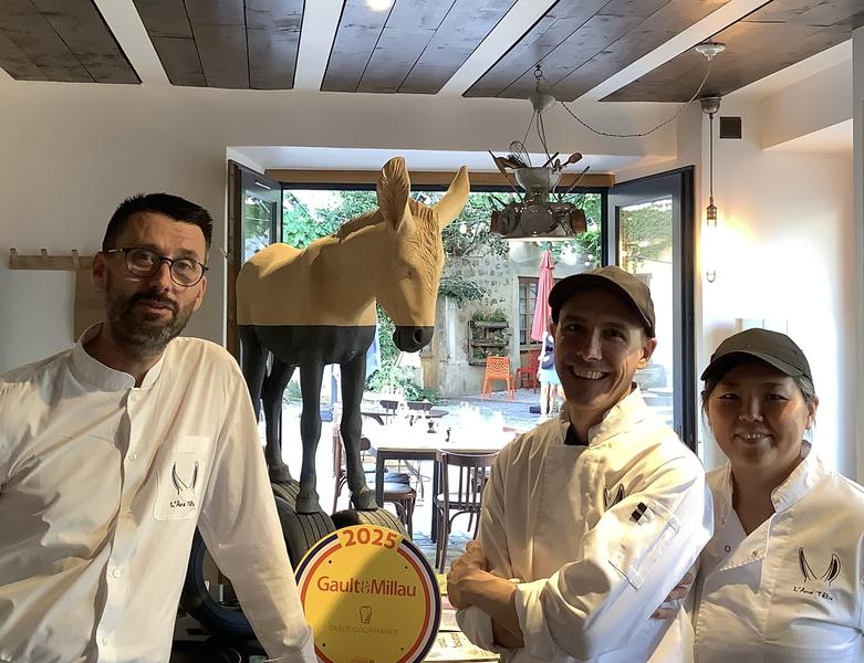 Au centre du village historique, à l'angle des places de la fontaine et de l'église, l'Âne Têtu est un restaurant de cuisine végétarienne, d'inspiration familiale. Il offre un emplacement propice à la tranquillité et à la pause gourmande avec 20 places en salle et 20 en terrasse sur la place piétonne de la fontaine.