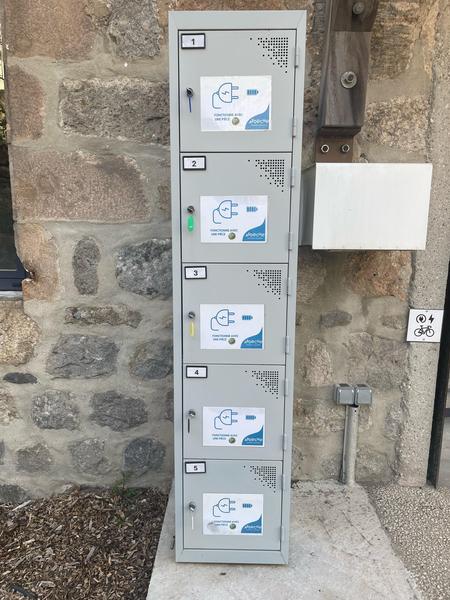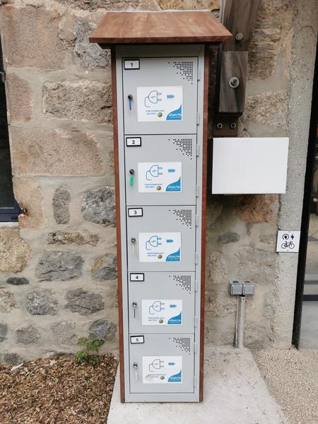 Retrouvez à l'office de tourisme du Cheylard/Maison du Bijou, 5 casiers de recharge sécurisés pour VAE et de rangement individuel pour cycliste (casque, sac…)