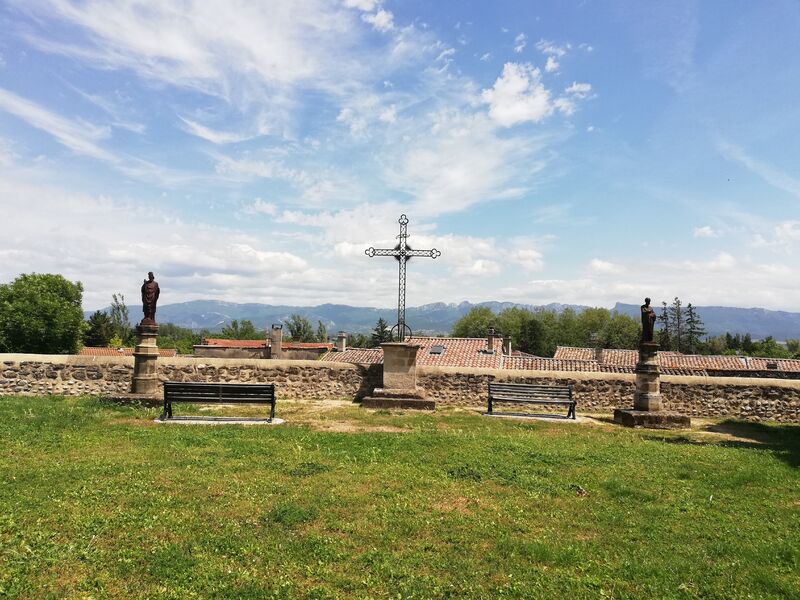 Maintes fois remaniée comme en témoigne le choeur gothique, l'église Saint-Didier est entourée d'une esplanade dont le mur d'enceinte est surplombé de statues de saints.