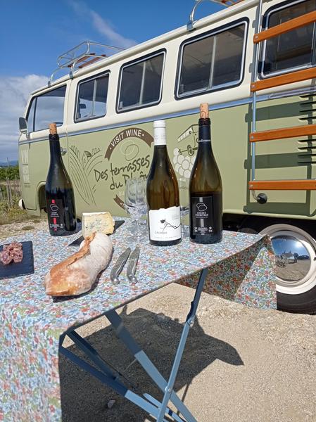 Une balade en Combi vintage 70 avec les commentaires du sommelier et dégustation vin, charcuterie et fromage