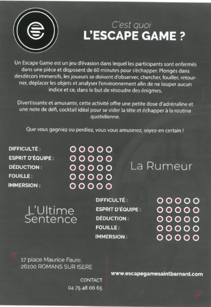 Accueil Pratique Offres touristiques Escape Game Saint Barnard