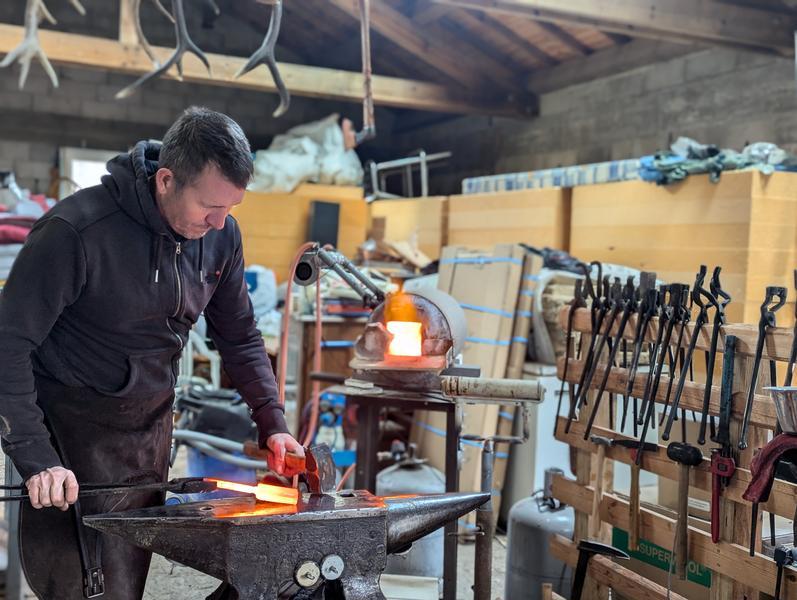 Philippe est un coutelier-forgeron passionné, créant à la main des couteaux, outils et objets artisanaux uniques. Il mêle matières et textures, s'inspirant de la nature, de la mythologie, de l'histoire et de la musique pour façonner ses œuvres.
