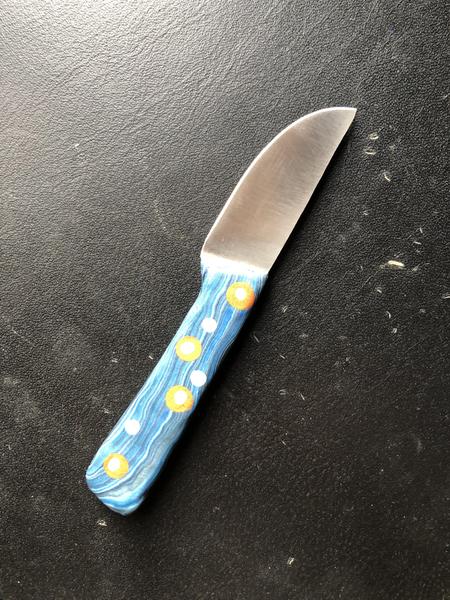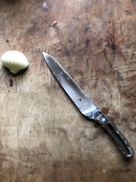 Il forge des outils en acier en carbone ou inox, lames maison depuis 1984. Passionné de cuisine, il aime fabriquer les couteaux de toutes tailles et de tradition en coopération avec les usagers. Un très grand choix de matériaux et de couleurs à la commande.
