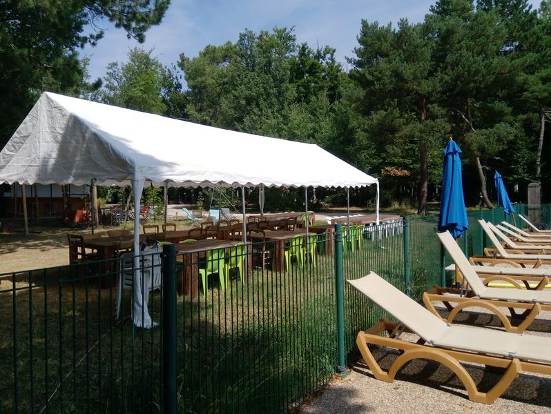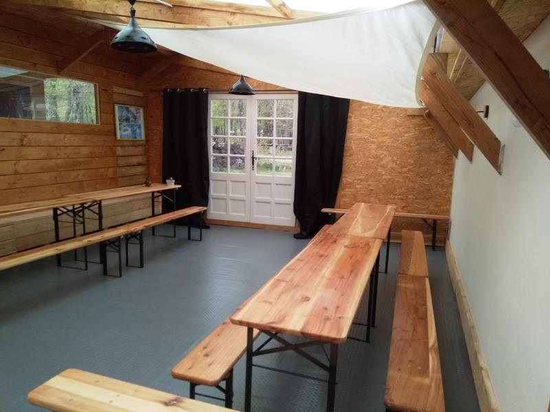 SALON D’ETE DE MAI A SEPTEMBRE = Salle de réception au centre du Domaine de 70m2 couverts •Capacité 80 pers debout / 60 pers assises en intérieur, avec mobilier amovible à disposition •Chaine Hifi Classique mise à disposition av prise Jack •Guirlande + 1 rallonge électrique + Mobilier de plein-air jusqu’à 100 personnes