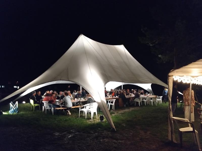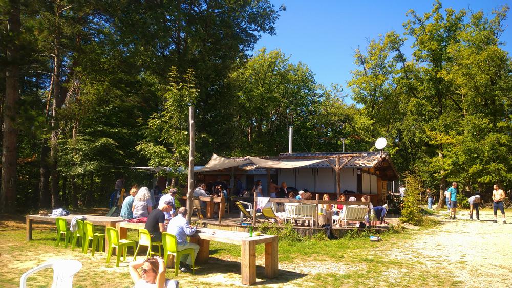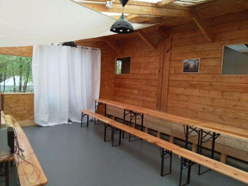 SANITAIRE : 7 WC + 7 douches + 20 lavabos, éviers, etc… • Ping-pong • Pétanque • Trampoline • Balançoire + Jeux pour enfants • Terrasses • Guinguette • Yourte de détente / lecture • 2 Barnums de 40 m2 chacun.