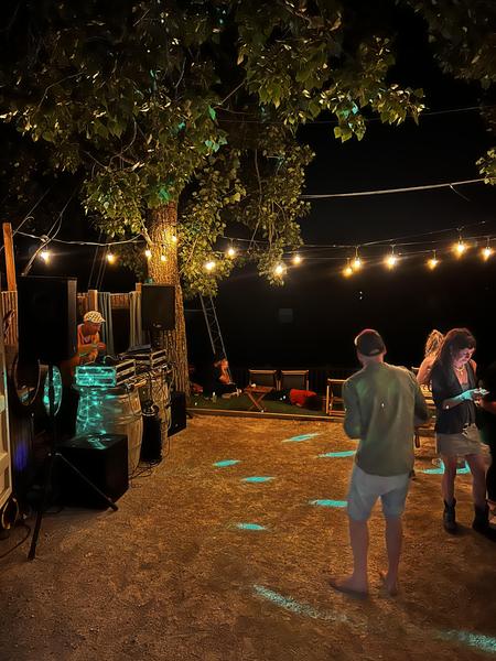 Espace de restauration sur place (boissons, burgers, frites, planches de charcuteries/fromages/crudités...)