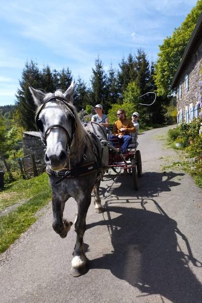 Ingrid meneuse diplômée et éthologue (spécialiste du comportement animal), vous conduira à travers nos beaux paysages ardéchois. Voter attelage sera tracté par Ladie notre jument parcheronne.