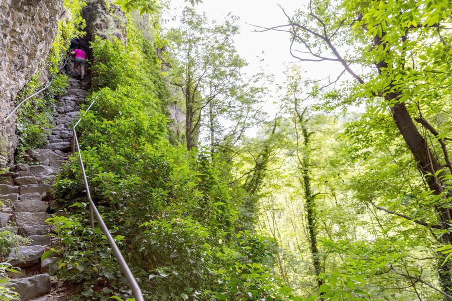 Même si ce belvédère est à proximité directe de l'échelle du roi, nous vous déconseillons vivement de l'emprunter dans le sens de la descente ! Il est préférable pour l'observer de suivre l'itinéraire pédestre depuis le Pont de l'Aspic, en direction du Pont du diable (balisage PR blanc et jaune) avant de l'emprunter dans le sens de la montée pour revenir dans le village (1h15 de circuit - 2km).