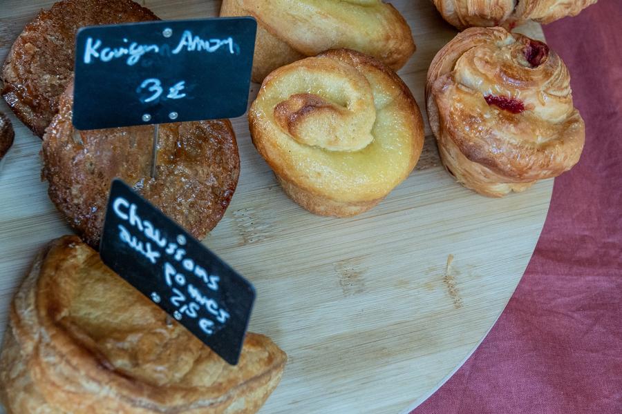 Vous pourrez trouver chez nous des croissants et pains au chocolat mais aussi des brioches à la crème de marron, aux myrtilles, ou pommes/noix (selon les saisons), des rolls fourrés au caramel beurre/salé et trempés dans le chocolat. Vous pouvez venir également craquer pour un mille feuille à la crème légère ou un entremet chocolat/noisette, ou bien choisir un de nos pains au levain pour déguster des tartines généreuses au petit déjeuner.
