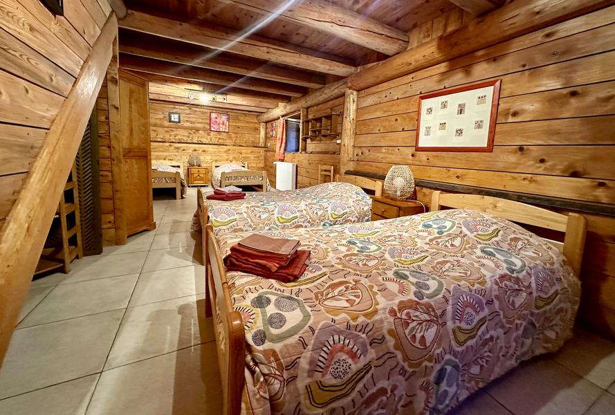 Dans ces deux chambres partagées (LES JONQUILLES / LES GENTIANES), nous disposons de lits simples suffisamment espacés pour préserver l'intimité de chacun. Situé dans l'aile Est de notre Ferme, vous y trouverez une ambiance chalet de montagne calme et reposante.