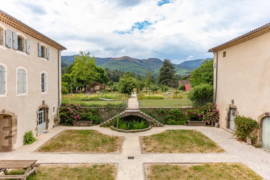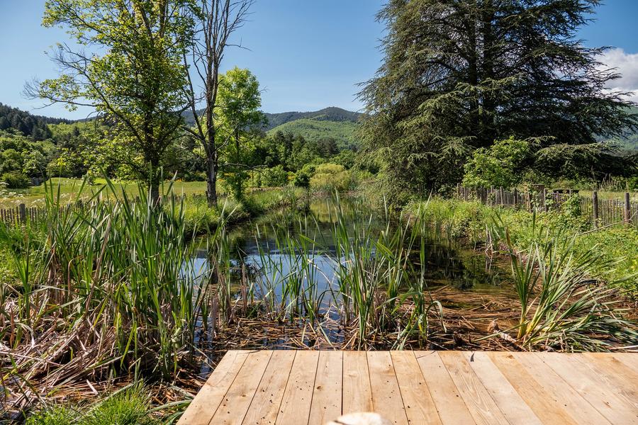 Les jardins de biodiversité mêlent plantes vivaces et mellifères, la gestion de l’agriculture, la châtaigneraie, la forêt, le volcan, la mare aux libellules…